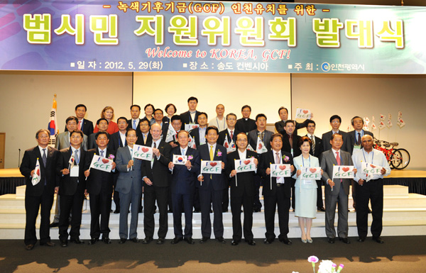 이번 출범식은 지난 3월13일 경합을 통해 녹색기후기금 국내 유치도시로 인천시가 확정돼 기획재정부 등 중앙부처와 합동으로 작성한 녹색기후기금 유치 신청서를 지난달 15일 제출함으로써 유치를 위한 범시민운동으로 전개코자 추진됐다.