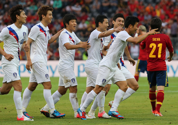 국제축구연맹(FIFA) 랭킹 31위인 한국은 전반에 1위인 스페인과 1골씩 주고받았지만 내용 면에서는 크게 뒤지는 경기를 펼쳤다.