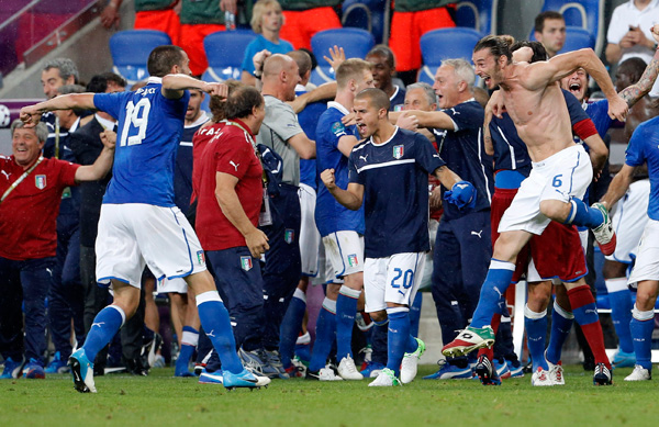 2-0으로 앞서고 안심할 수 없었던 이탈리아는 스페인이 경기 종료 직전에 결승골을 넣었다는 소식에 비로소 환호했다.