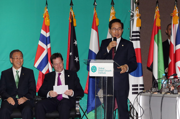 이 대통령은 서명식에서 환영사를 통해 “GGGI는 기후변화와 에너지, 물과 식량위기의 현장에서 문제를 해결하는 행동지향적 기구를 지향한다”며 “창의와 혁신을 생명으로 하는 민-관 파트너십을 목표로 해 국제사회의 항구적 자산으로 계속 발전해나갈 것”이라고 밝혔다.