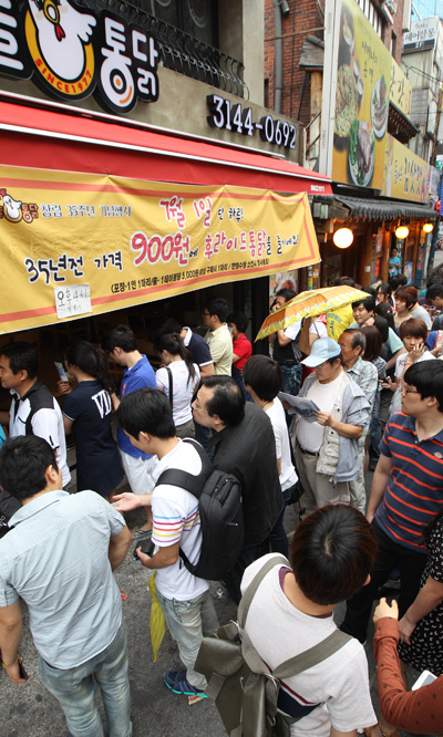900원짜리 통닭 사기 위해 몰린 사람들