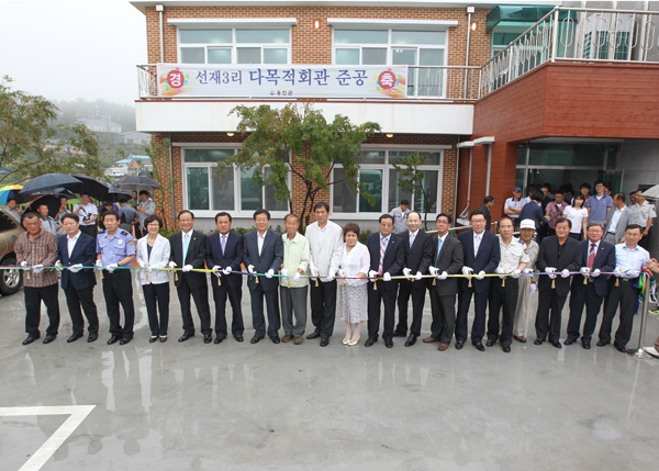 인천시 옹진군은 지난 6일 영흥면 선재3리에 주민들의 복지증진을 위한 다목적회관을 완공하고 조윤길 옹진군수를 비롯한 군의원, 유관기관장, 주민 등 100여명이 참석하여 준공식을 가졌다. 이번에 준공된 다목적회관은 총 사업비 8억원을 들여 지상 2층, 연면적 335㎡의 규모로 건립됐으며 1층은 노인들의 사랑방 역할을 하는 경로당으로 사용하게 되고 2층은 선재3리 주민들이 모두 함께 사용할 수 있는 마을회관 사용하게 된다.