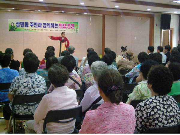 성남시 분당구 노인회지회는 지난 13일 삼평동주민센터 강당에서 노인 위한 민요 공연회를 가졌다.