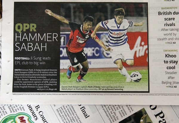 박지성은 17일 밤 말레이시아 코타키나발루의 리카스 스타디움에서 열린 말레이시아 사바 주 선발팀과의 프리 시즌 경기에서 주장 완장을 차고 출전해 전반 45분을 소화했다.