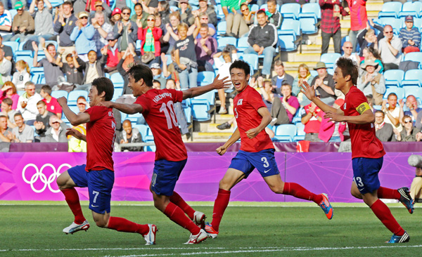 홍명보 호가 2012 런던올림픽 조별리그에서 첫 승을 기록했다.