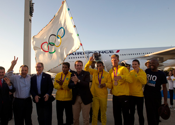 리우 조직 위원회 올림픽기 휘날리며