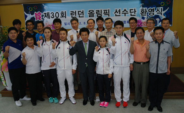 경기도펜싱협회는 21일 수원시내 모 음식점에서 제30회 런던올림픽 출전 선수단 환영회를 가졌다.