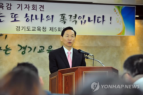 진보성향인 김상곤 교육감이 이끄는 경기도교육청이 인권침해 소지 등을 이유로 학생들의 학교폭력 학교생활기록부(학생부) 기재를 계속 보류하기로 했다.