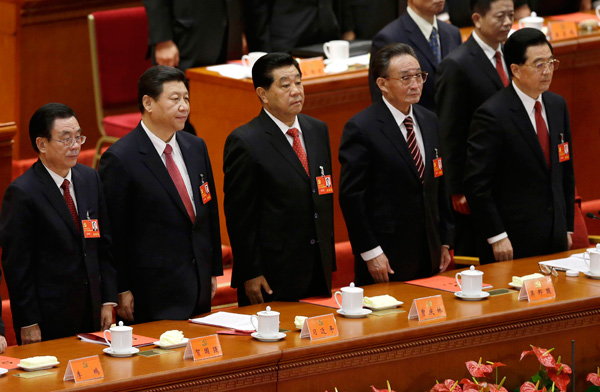 후진타오(胡錦濤)·우방궈(吳邦國)·원자바오(溫家寶)·자칭린(賈慶林)·리창춘(李長春)·허궈창(賀國强)·저우융캉(周永康) 등 나머지 7명의 상무위원은 신규 중앙위원 명단에 이름을 올리지 않아 퇴진을 확정했다.
