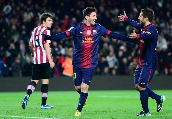 메시는 2일 스페인 바르셀로나의 캄프누 스타디움에서 열린 아틀레틱 빌바오와의 2012~2013 정규리그 14라운드 홈 경기에서 전반 22분 결승골을 포함해 2골을 꽂아 팀의 5-1 승리를 이끌었다.