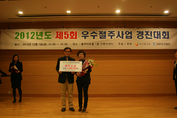 이번 사업은 대상별로 차별화된 프로그램으로 연도별 계획사업의 연속성을 유지했으며 건강음주사업의 체계를 구축하고 방향을 제시하는 데 큰 기여를 했다는 평가를 받으면서 최우수상을 수상했다.