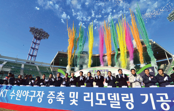 지난 1988년 준공된 수원야구장을 프로야구 구단이 사용하기에 적합한 최신형 구장으로 탈바꿈하기 위해 마련된 이날 기공식에는 염태영 수원시장과 이석채 KT 회장, 김갑동 경기신문 사장, 남경필, 김진표, 이찬열, 신장용 등 수원지역 국회의원 및 안민석(오산), 이현재(하남) 등 도내 국회의원과 프로야구 10구단 수원 유치 시민연대를 비롯한 2천500여명의 시민들이 대거 참석해 10구단 유치를 응원했다.