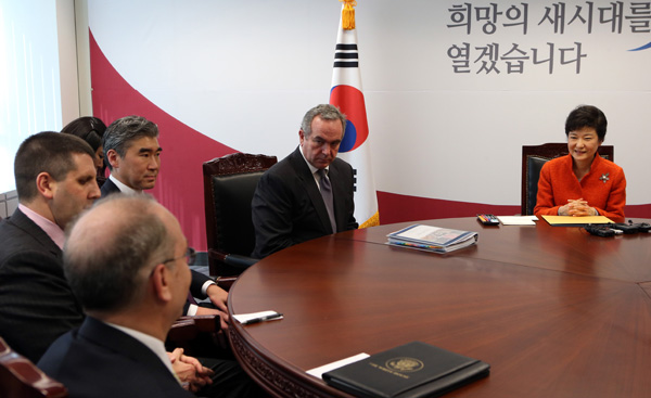 美 대표단 접견하는 朴당선인