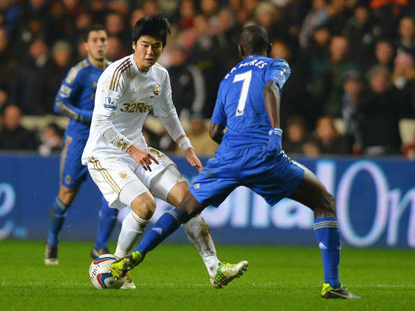 빠른 공수전환을 앞세워 첼시를 봉쇄한 스완지시티는 전반 37분 기성용이 상대 선수의 태클에 다치는 아찔한 상황을 겪기도 했다.