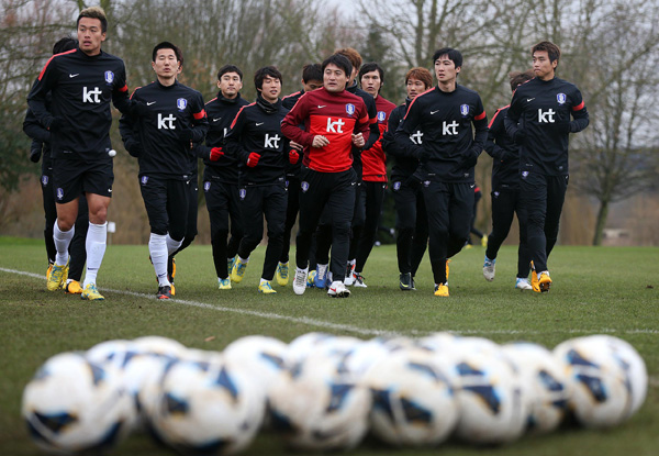 최강희 감독은 런던 서쪽 외곽의 말로우에서 현지 적응 훈련을 통해 선수들의 몸 상태를 지켜보며 선발진을 저울질하고 있다.