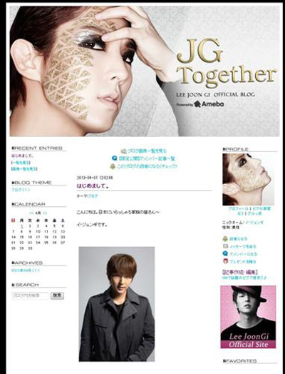 타이틀 ‘제이지 투게더’인 그의 블로그(ameblo.jp/jgtogether)는 이미 공개 전부터 상위에 랭킹됐으며, 문을 열자마자 일본 팬은 물론 많은 해외팬들의 축하 메시지와 등록 신청이 몰려 한류 부문 1위를 차지했다.