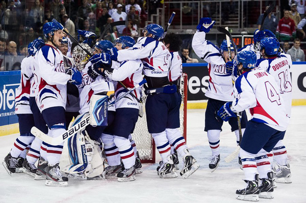 변선욱 감독이 이끄는 대표팀은 16일 헝가리 부다페스트 스포르트아레나에서 열린 2013 국제아이스하키연맹(IIHF) 디비전1 그룹 A(2부) 대회 2차전에서 홈팀 헝가리에 5-4(0-3 1-1 3-0 0-0 승부치기<1-0>)로 역전승했다.