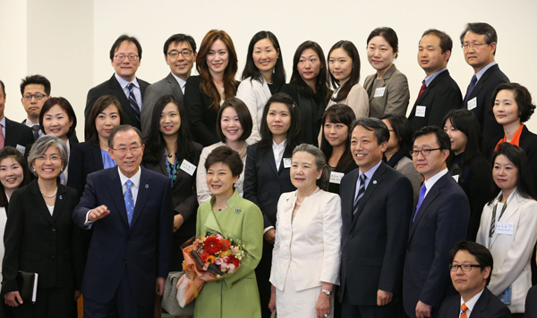UN한국직원과 사진찍는 朴대통령