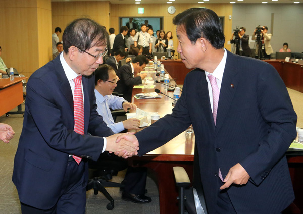 악수 나누는 박원순 시장과 원혜영 의원