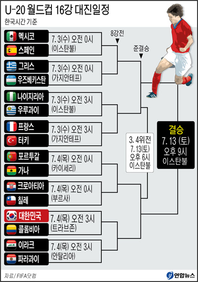 한국은 지난 달 30일까지 터키에서 이어진 대회 조별리그 결과, C조 1위에 오른 콜롬비아와 4일 오전 3시 트라브존에서 대회 16강전을 치른다.