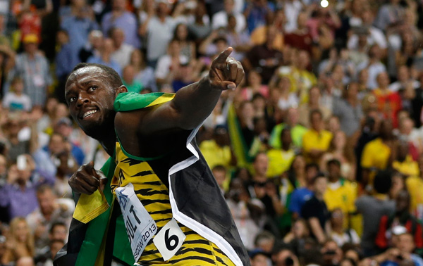 볼트는 우승을 확정한 뒤 팬들의 우레같은 박수갈채 속에 블레이크와 함께 자메이카 국기를 두르고 경기장을 돌았다.