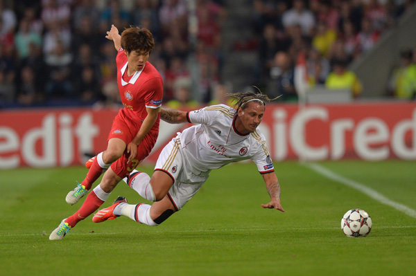 에인트호번은 21일 네덜란드 에인트호번의 필립스 스타디움에서 열린 AC밀란과의 2013~2014 유럽축구연맹(UEFA) 챔피언스리그 플레이오프 1차전에서 1-1로 비겼다.