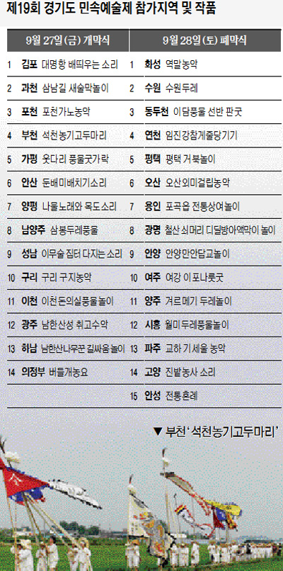 경기도 민속예술 발전을 위한 경연의 장인 ‘제19회 경기도 민속예술제’가 오는 27~28일 양일 간 포천종합운동장에서 열린다.