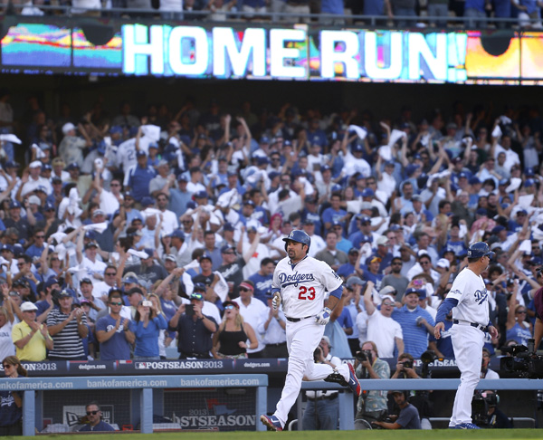 디비전시리즈에서 매 경기 홈런포를 펑펑 터뜨리다가 챔피언십시리즈에서는 한 개의 대포도 가동하지 못하며 차갑게 식어가던 다저스 방망이가 모처럼 다시 폭발했다.