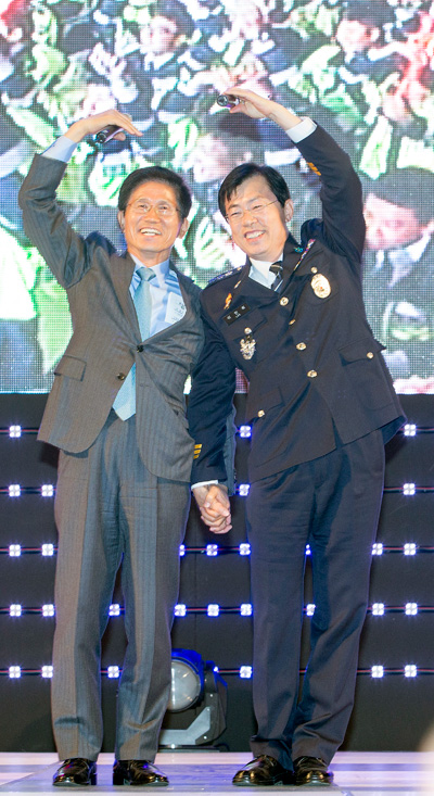 김지사·경찰청장 “한마음으로 하트 그려요”