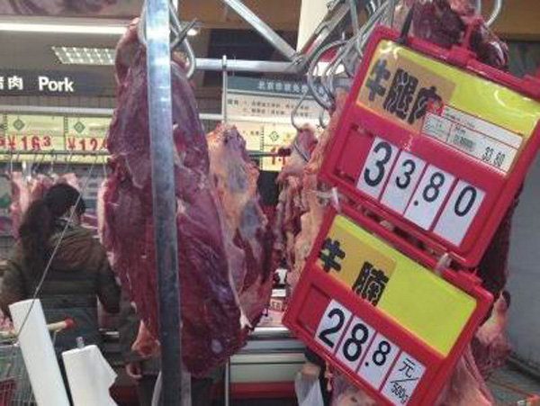 육류가격을 살펴보면 돼지고기가 가격조절에 따른 안정세에 힘입어 킬로그람당 24.4원으로 보합세를 보인 반면 소고기는 킬로그람당 59.6원으로 동기 대비 25% 증가, 2년 사이에 무려 60% 올랐다. 양고기는 년초와 비슷한 64.76원으로 동기 대비 13% 증가, 닭고기는 14.14원으로 4% 하락했다.