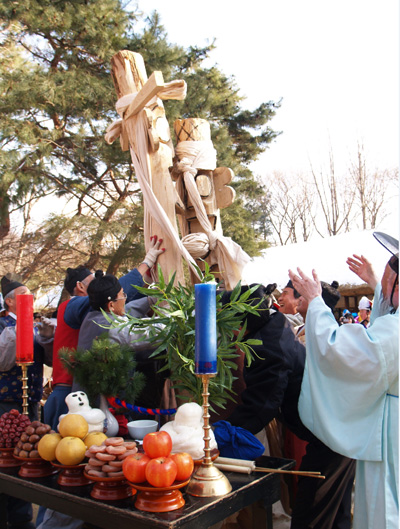 한국민속촌의 장승제는 일반적인 장승제와 달리 장승혼례식으로 진행되는 것이 특징이다.