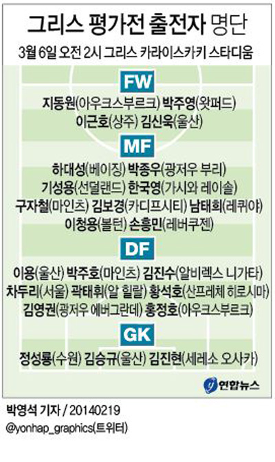 홍명보 감독은 19일 서울시 종로구 신문로 축구회관에서 그리스와의 평가전에 나설 24명의 대표선수 명단을 발표하면서 최전방 공격수 자리에 박주영을 포함했다.