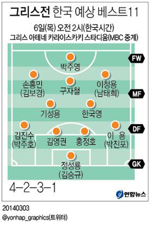 그리스 평가전은 2014 브라질 월드컵 조별리그에서 맞붙는 러시아와 벨기에를 상대해야 하는 대표팀이 공격력과 체격조건이 뛰어난 유럽팀을 상대로 모의고사를 치르는 자리다.