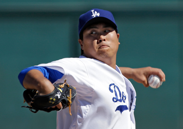 2루를 향한 류현진의 견제구가 뒤로 빠지면서 주자들이 2·3루로 진출했다. 이번 시범경기 류현진의 첫 실책이었다.