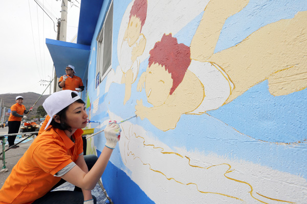 벽화 그리기 봉사하는 하얏트 리젠시 직원들