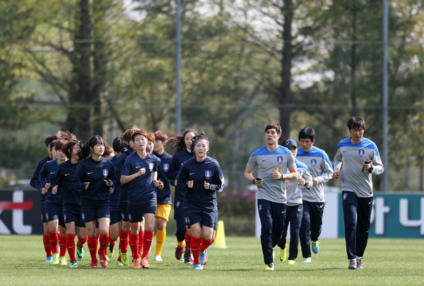2014 아시아축구연맹(AFC) 여자 아시안컵 축구대회에 출격하는 태극 여전사들이 담금질에 들어갔다.
