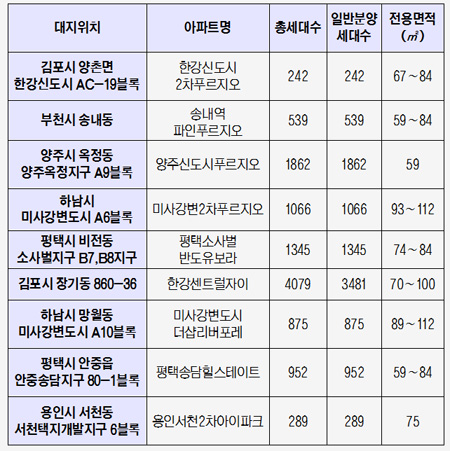 지역별로는 경기도가 1만1천249가구로 가장 많고, 경남(2천463가구), 충남(1천496가구), 광주(1천410가구), 서울(1천7가구), 경북(354가구) 등의 순이다.