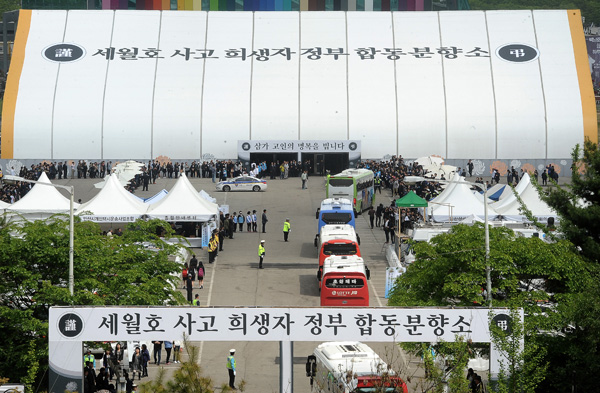 구조된 단원고 학생들 태우고 합동분향소 앞으로
