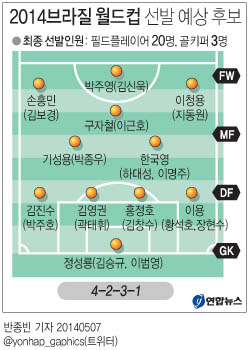 브라질 월드컵에 나설 태극전사들은 골키퍼 3명과 필드플레이어 20명으로 구성된다.