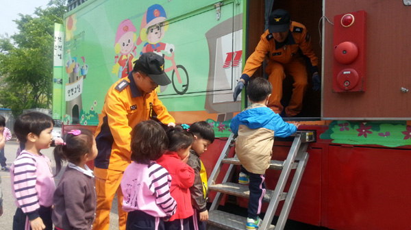 119소방안전체험하는 어린이들