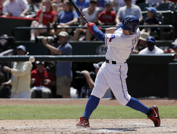 추신수는 18일(이하 현지시간) 미국 텍사스주 알링턴 글로브 라이프 파크에서 열린 미국프로야구 토로토 블루제이스와의 홈경기에서 3번 지명 타자로 출전해 3타수 2안타를 치고 볼넷 1개를 골랐다.