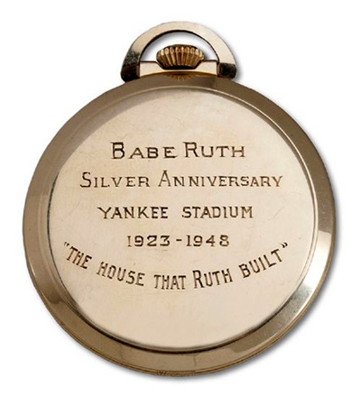 19일 AP통신에 따르면 스포츠용품 경매업체 SCP옥션은 지난 18일 미국 남캘리포니아에서 경매를 열어 베이브 루스가 소장했던 금 회중시계를 65만108달러(약 6억6천600만원)에 판매했다.