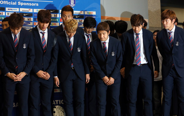 브라질 월드컵 축구 대회 조별리그에서 1무2패의 부진한 성적으로 탈락한 축구 대표팀이 30일 인천국제공항을 통해 귀국했다.
