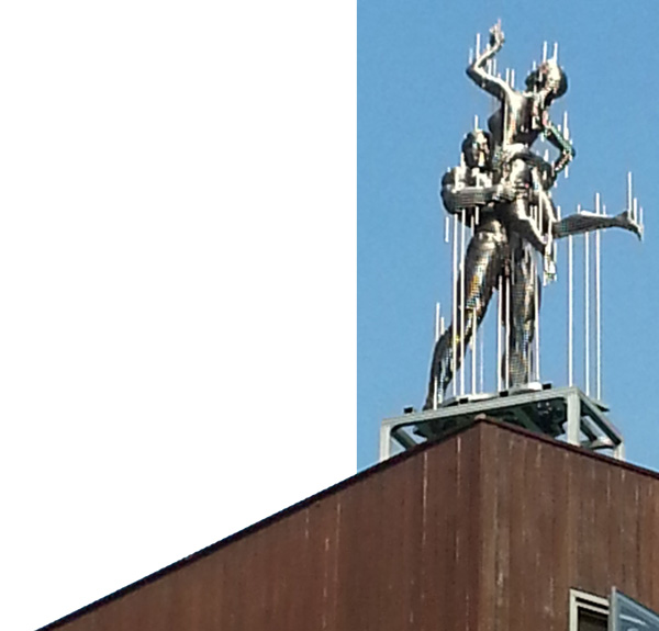 박찬걸 작가는 ‘페르세포네의 납치’란 신화주제를 선택하고 있다. 얇은 스테인레스 스틸의 층과 결이 만들어내는 그의 작품은 특히 갤러리 옥상에 설치됨으로써 하늘도 작품의 일부가 되고 있다.