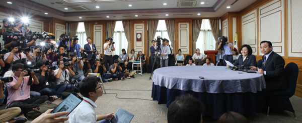 ‘오랜 만에 웃는’ 여야 대표… 세월호법 합의문 발표