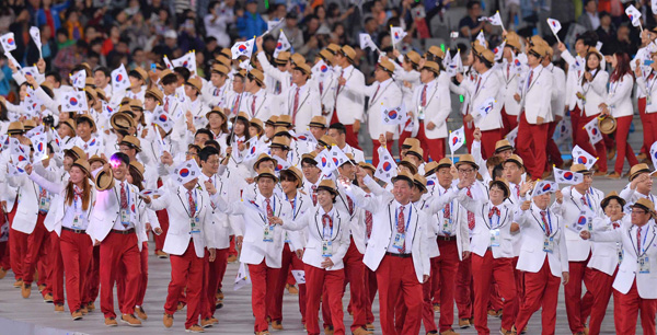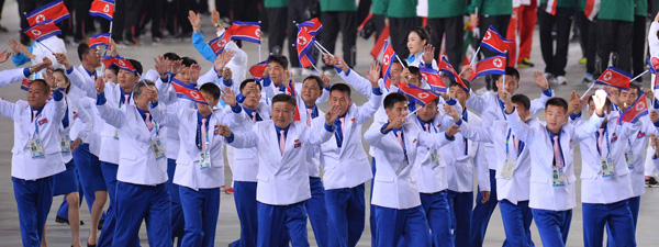 북한은 조선민주주의인민공화국이라는 국명으로 일본에 이어 30번째로 들어섰고, 개최국인 우리나라는 레슬링 대표인 김현우를 기수로 내세우고 맨 마지막 순서로 입장했다.