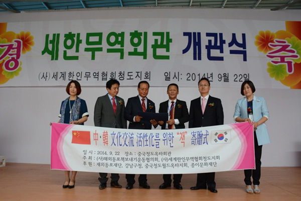 22일, 세계한인무역협회 청도지회 무역회관이 청도세한레포츠에서 성황리에 개관됐다. 조선족 위주로 무어진 단체가 자기의 회관으로 정식으로 경영하는 시대가 드디여 열렸다.