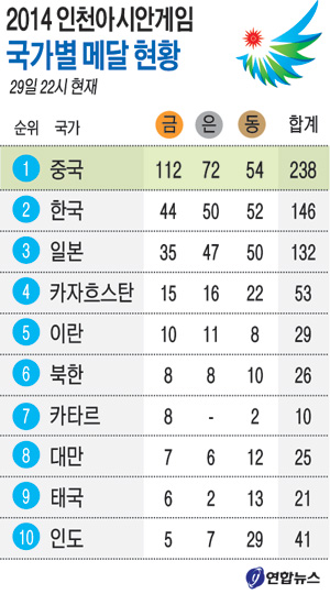 한국이 카누와 테니스에서 감격적인 두 개의 금메달을 추가하며 종합 2위 자리를 굳게 지켰다.