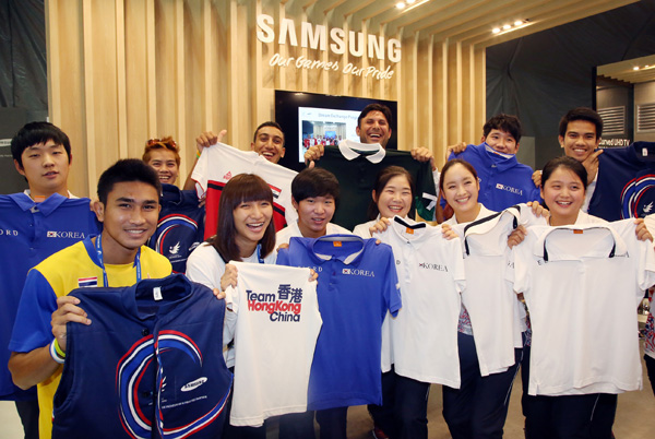 인천AG 선수촌에서 유니폼 교환