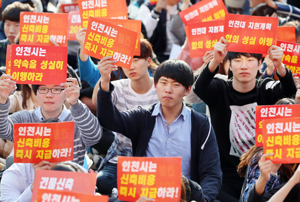 인천대 학생들 “시, 건물 신축비 지원 합의 이행하라”